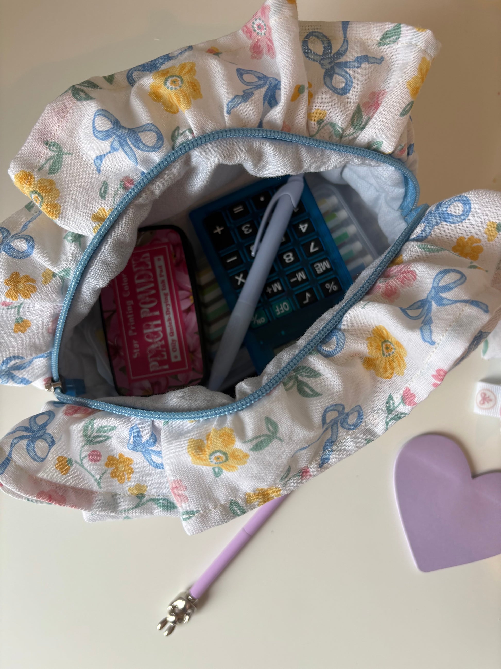 Study Bloom, c’est la rentrée rêvée : des petits nœuds bleus, des fleurs comme griffonnées à l’encre pastel, une ambiance douce et appliquée. Avec son imprimé fleuri et sa doublure bleu ciel, L’Audacieuse de cette capsule t’accompagne avec style et sérénité.