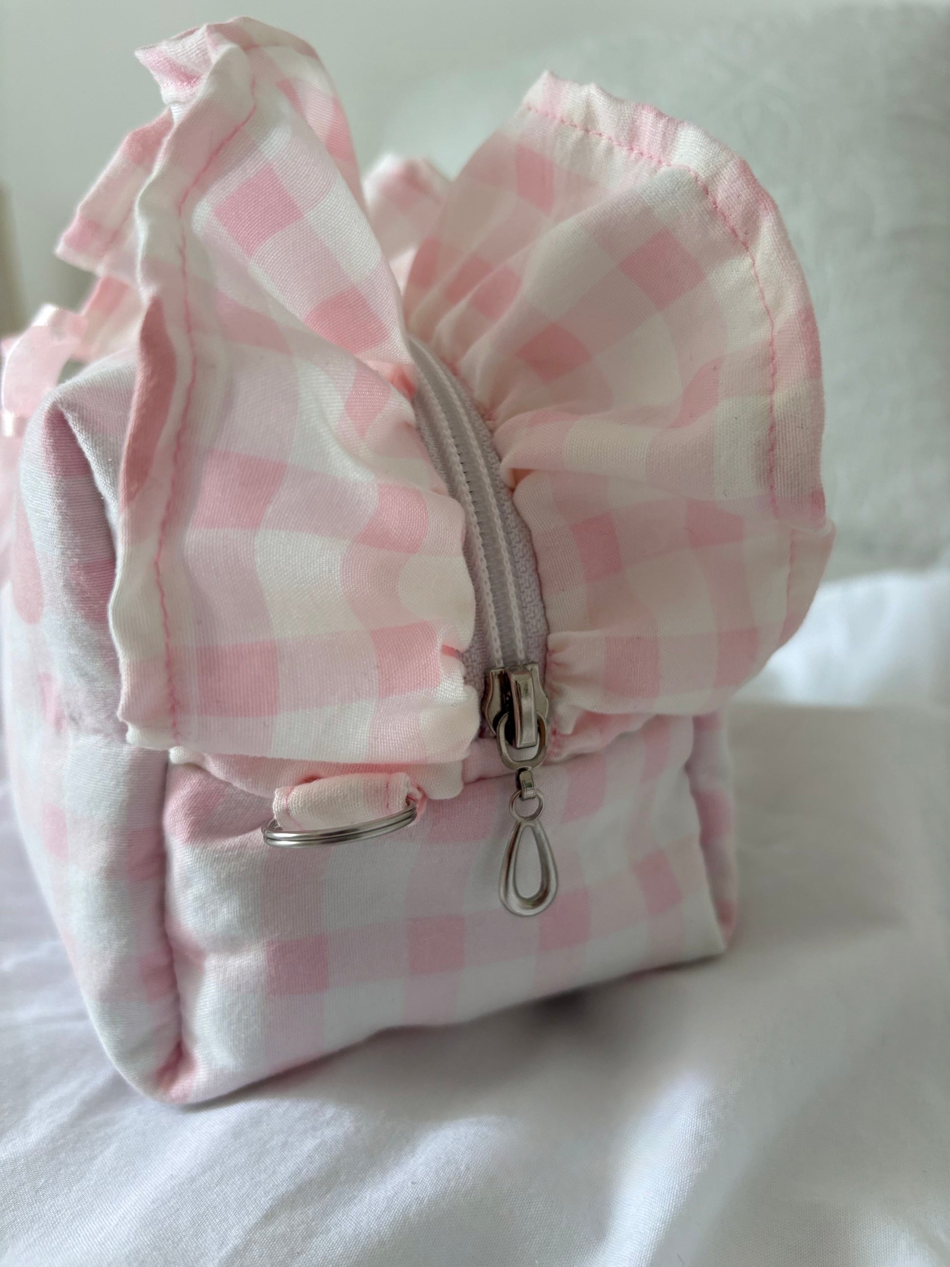 Soft Secret, c’est une parenthèse de douceur pastel, un soupir de féminité à glisser dans ta valise. Le vichy rose à petits cœurs évoque une tendresse douce et espiègle, comme un mot doux qu’on garde contre soi.