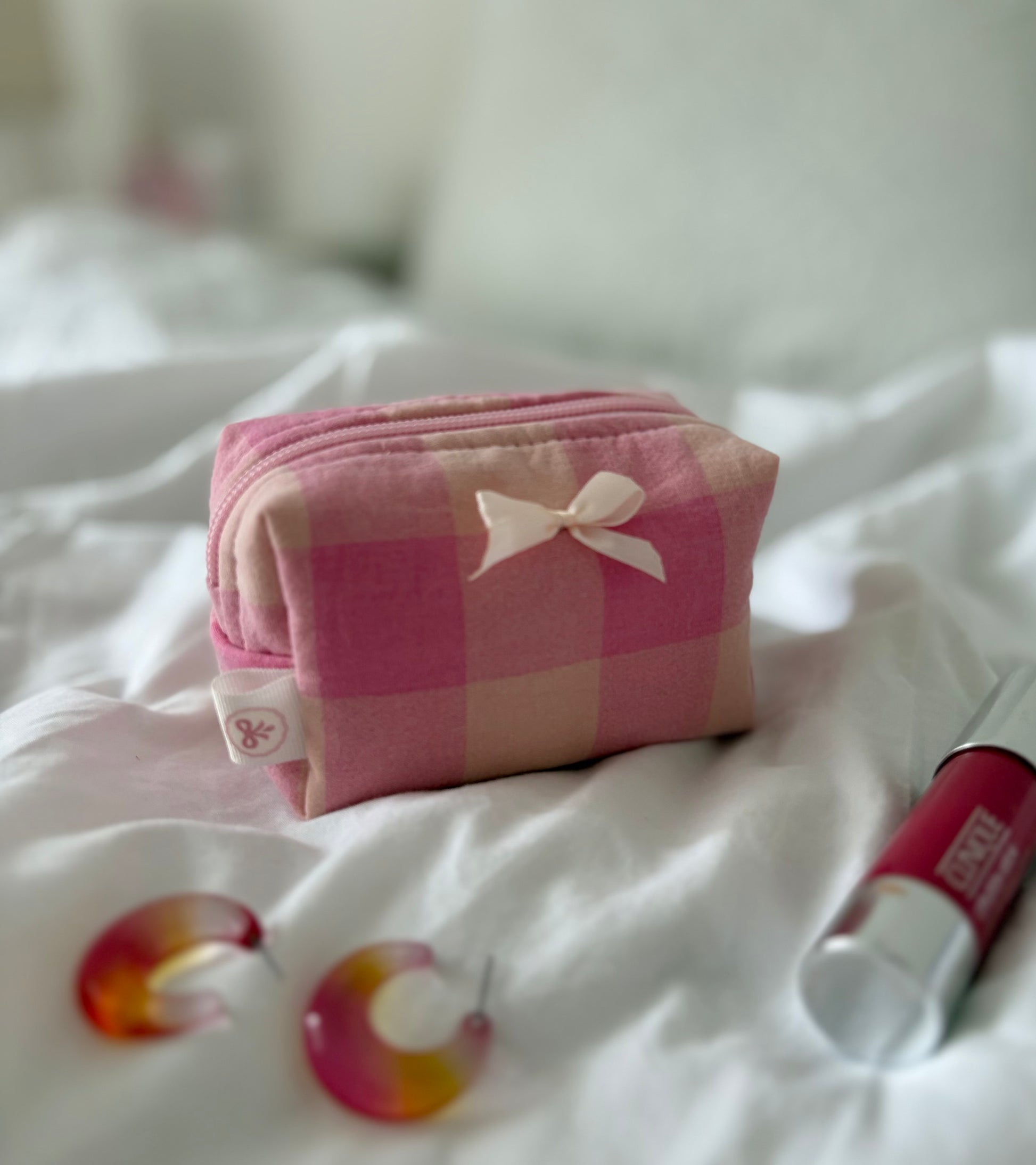 Le tissu vichy corail sâassocie Ă la doublure jaune pĂąle pour une capsule joyeuse & solaire.